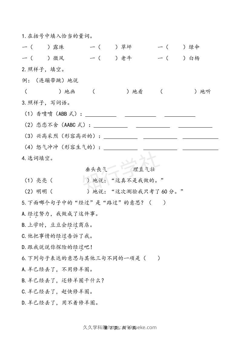 二下语文五一假期练习(含答案6页)jiujiuxueke4个月前发布关注私信0317二下语文五一假期练习(含答案6页)此内容为付费资源,请付费后查看学币9.9学科会员免费立即购买您当前未登录!建议登陆后购买,可保存购买订单格式pdf页数6 页大小252.86 KB付费资源 ——预览已结束,还剩4页未读——开通会员后可免费下载高清完整文档 © 版权声明文章版权归作者所有,未经允许请勿转载。THE END小学语文 喜欢就支持一下吧点赞7 分享QQ空间微博QQ好友海报分享复制链接收藏