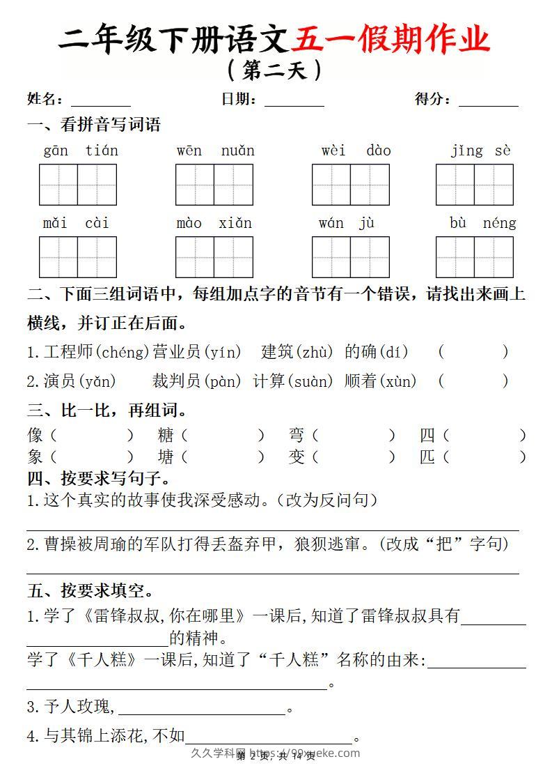 二下语文五一假期作业两套(含答案14页)jiujiuxueke4个月前发布关注私信0559二下语文五一假期作业两套(含答案14页)此内容为付费资源,请付费后查看学币9.9学科会员免费立即购买您当前未登录!建议登陆后购买,可保存购买订单格式pdf页数14 页大小699.03 KB付费资源 ——预览已结束,还剩12页未读——开通会员后可免费下载高清完整文档 © 版权声明文章版权归作者所有,未经允许请勿转载。THE END小学语文 喜欢就支持一下吧点赞9 分享QQ空间微博QQ好友海报分享复制链接收藏